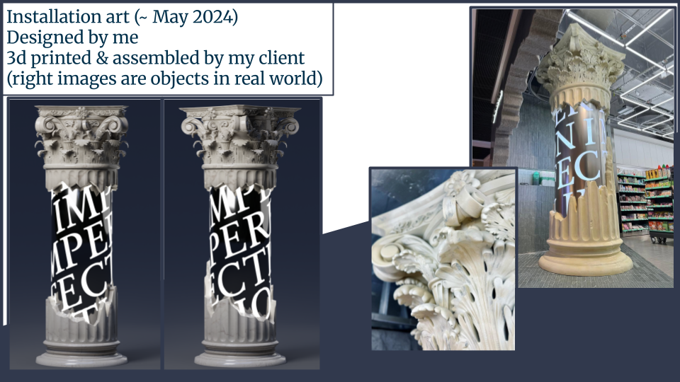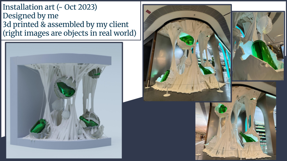 此案例展示如何以 Blender 建模、GLTF 打包,並透過 Three.js 在網頁中呈現互動式 3D 藝術裝置。設計想法偏向綠色藝術風格,客戶利用此設計打印了 3米高 的裝置藝術放於門前。 重點 模型樣條/材質優化,確保於行動裝置仍流暢 多視角攝影機切換與動畫巡覽